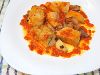 Deixe marinando e comece a preparar os demais ingredientes... Acima as batatas. Usei só 4 batatas cortadas em 4 cada uma que resultou 16 gomos...
